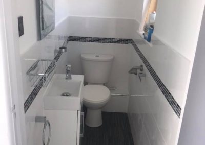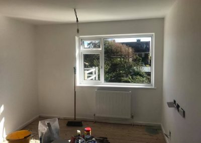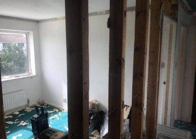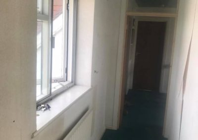 Customer wanted to have a seperate living quarters in the upstairs of the house so created a new lounge by taking out a stud wall and re-locating the door to make more space. All walls stripped and new bathroom with new plastered ceilings and flooring throughout.